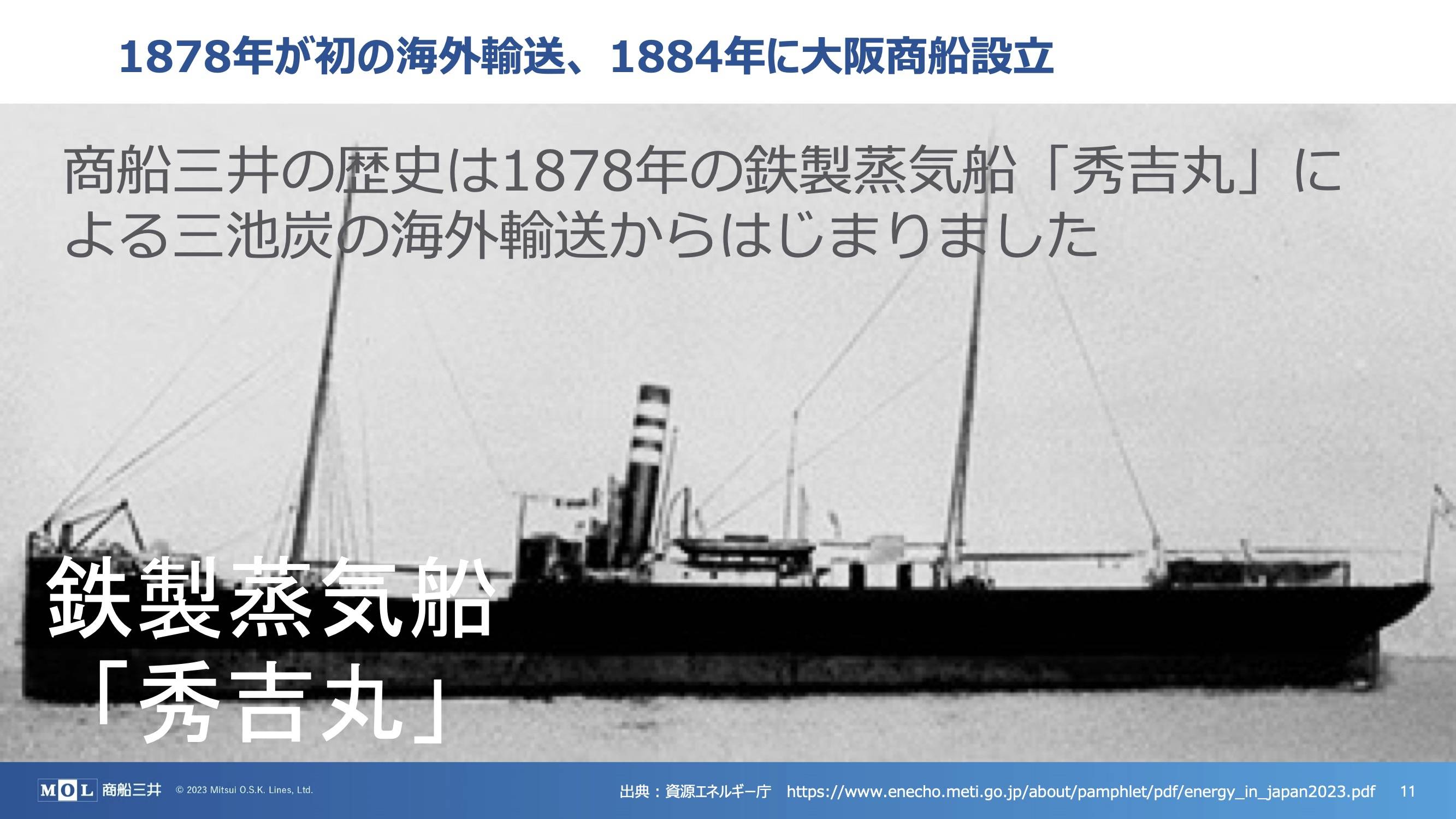 ・1878年が初の海外輸送、 1884年に大阪商船設立